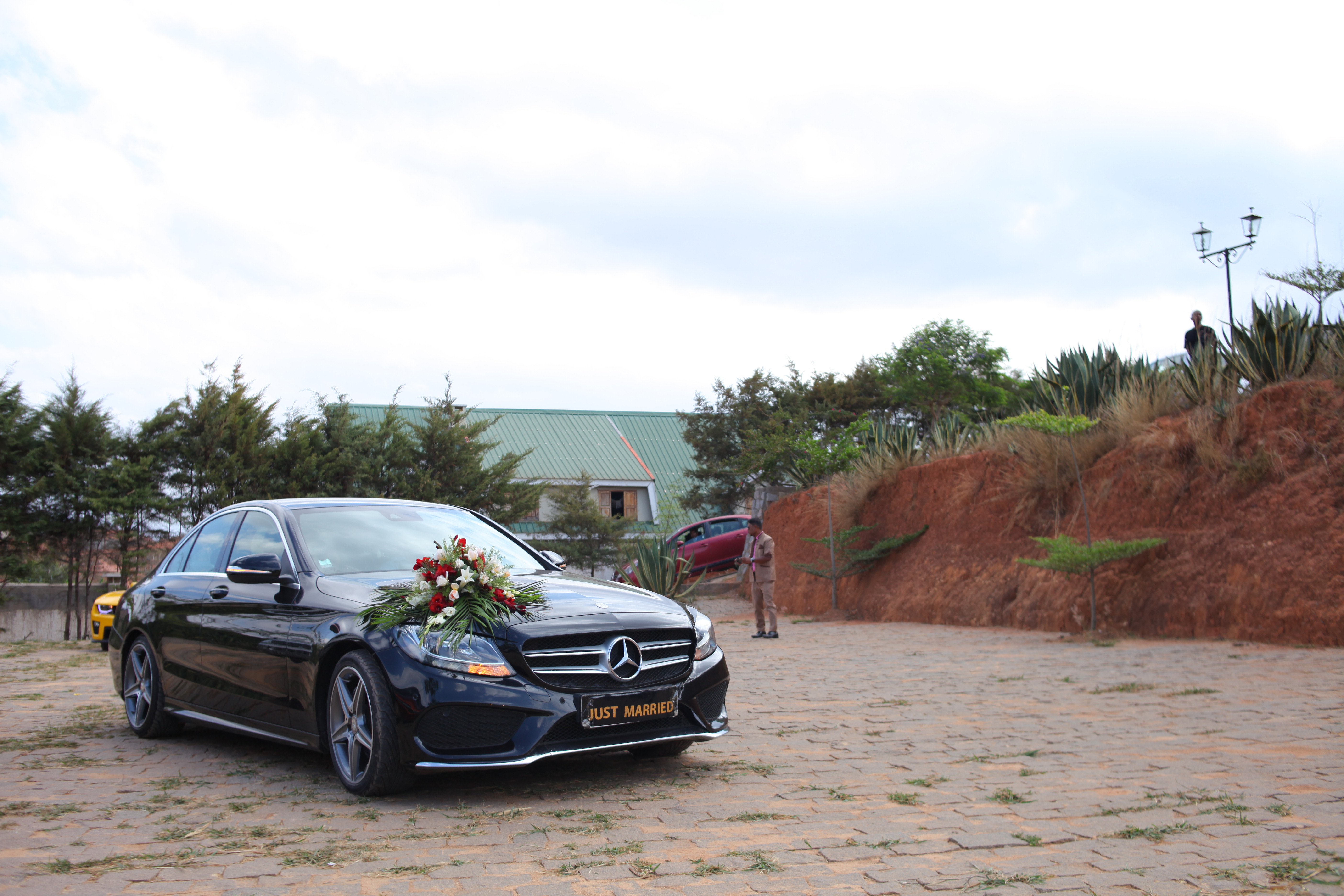 Une limousine majestueuse fait son entrée suivie de la voiture des parents
