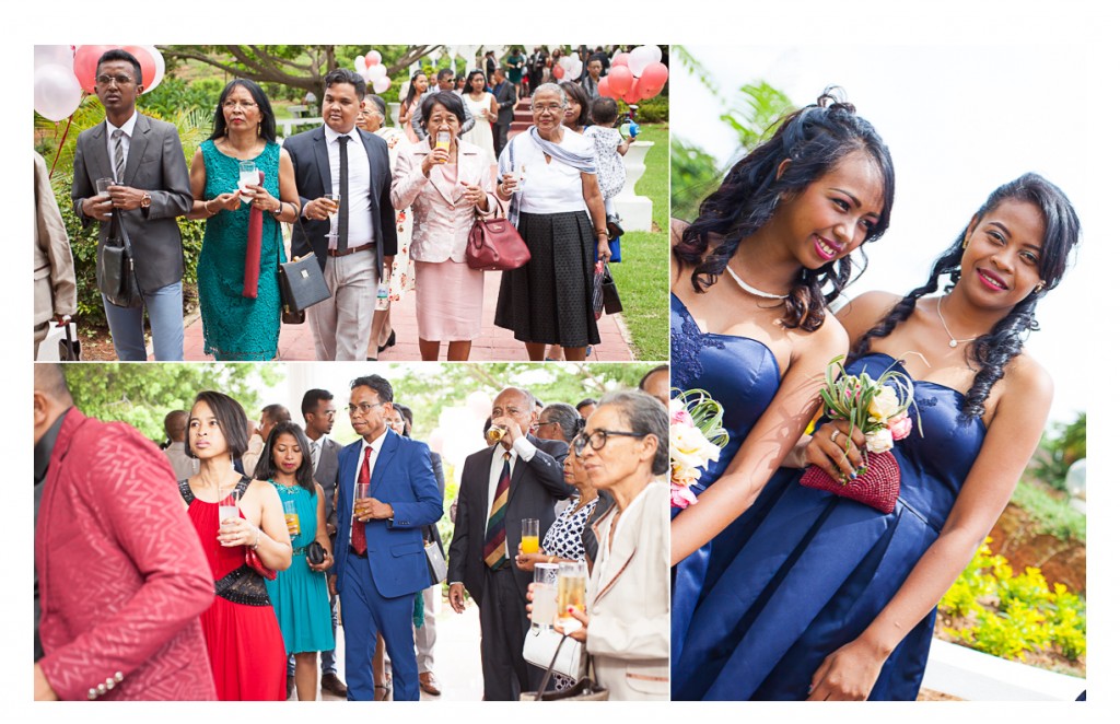 Il est temps d’entrer en salle. Les invités vont féliciter Fanilo et Francia à l’entrée.
