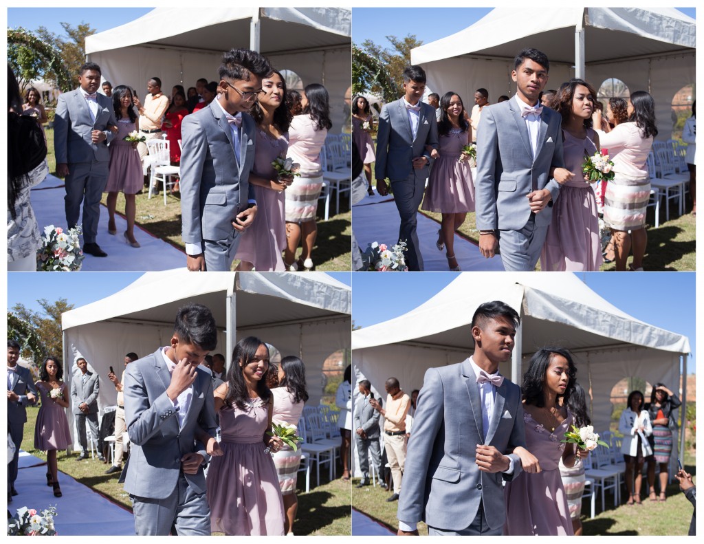 L’entrée en salle des nouveaux mariés est spectaculaire, bien préparée avec les garçons et demoiselles d’honneur.