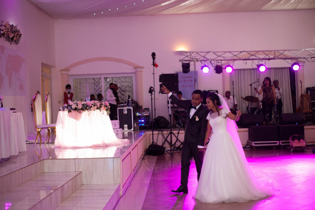 Entrée dans la salle et début des festivités, animés par l’orchestre Album Music. Les nouveaux mariés ont opté pour le grand buffet.