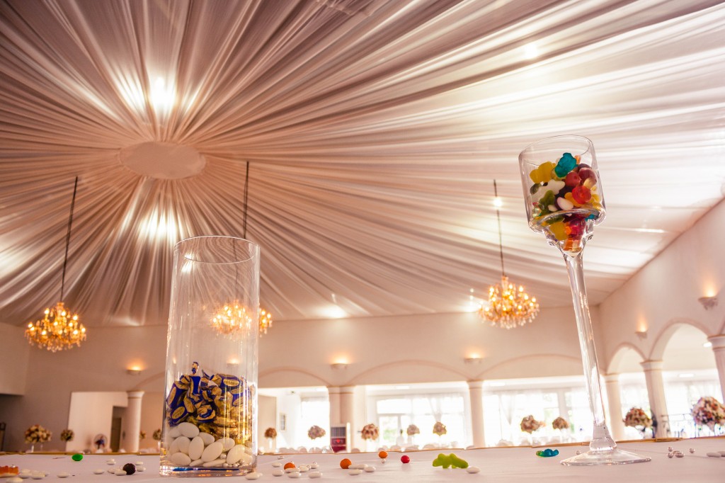 Pour personnaliser votre journée spéciale, nous vous suggérons l’installation de voilage drapé blanc, qui offrira la magie intimiste à votre soirée. Les voilages suspendus, installés en forme d’étoile au plafond, ajoute une note romantique.